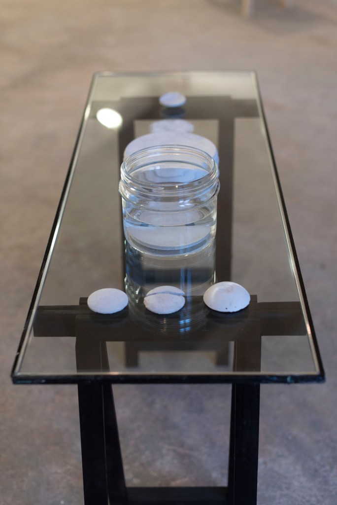 In my artistic research I am working with performative installations and printmaking as well as with plaster. I understand plaster as a material of high potential, that should not be restricted to its sculptural value, but to be respetcted in its process-related qualities. For example: The plaster powder can have a distinctive graphic expression by itself. And the use of water on the hardened plaster has a huge impact on its chromaticity as well as on its materiality.